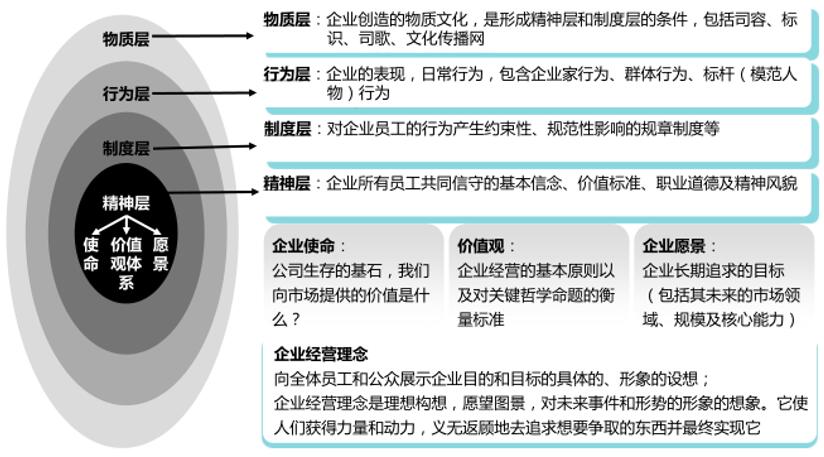 按照文化的四层次理论,完善物质层、行为层的文化要素,形成文化基础。