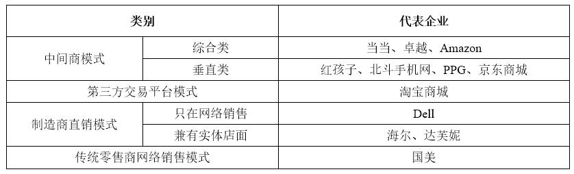 1. 中间商模式。中间商模式是指企业没有自己的生产基地,仅作为中间商在网络上销售商品,根据销售商品种类的多少又可以进一步分为综合类和垂直类,综合类如当当、亚马逊,这样的 B2C 公司出售的产品种类多、大而全。垂直类B2C公司专营某一类商品,如:红孩子主要经营婴童用品。