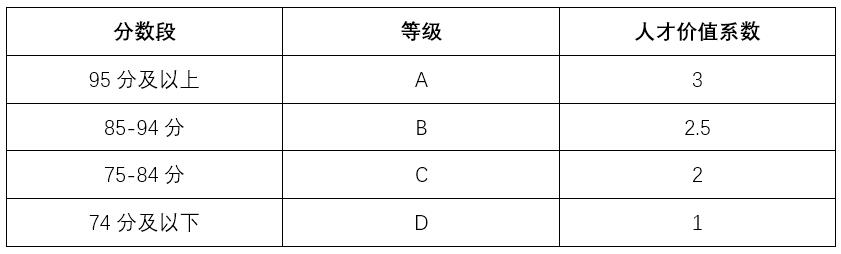 关于人才价值的评价标准,企业可以根据本企业的情况具体制定,激对象的学历、工作能力、其工作的重要性等都可以作为评价依据。然后根据评分结果赋予其人才价值系数,如表3-2: