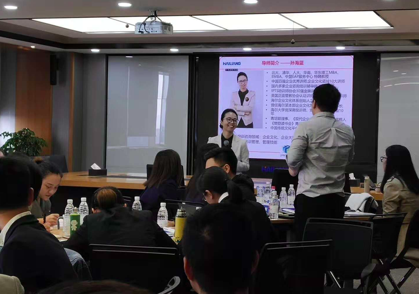 本次课程由曾任海尔大学资深讲师、海尔某本部企业文化部长、人力行政部长、《樊登读书会》青岛分会副会长的孙海蓝老师讲授。