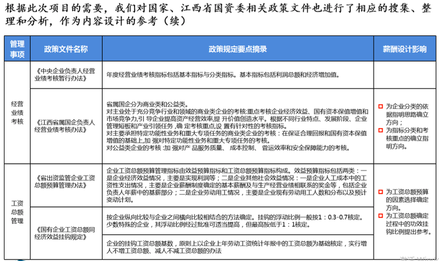 下属单位领导班子考核薪酬设计中,更加注重对于国家以及当地的国资等在国企考核管理方面的政策要求,同时充分借鉴欧博官网ABG国资案例库的案例,对下属单位进行了分类考核的设计。