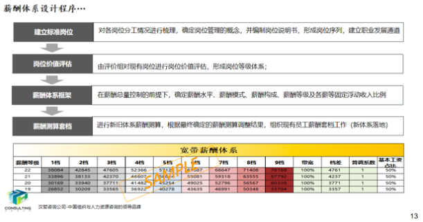 充分对标一线城市市场薪酬数据,根据追随型薪酬策略,结合各岗位稀缺程度等因素,设计薪酬分位值。同时对薪酬结构、薪酬模式、调薪标准等一系列内容进行细化设计。