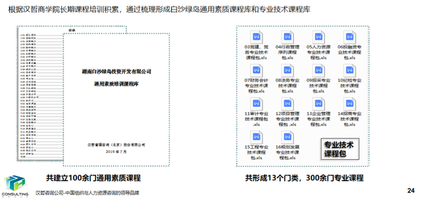 设计培训体系全流程,包括需求提交、课程设计、培训执行和培训评估。优化现有专业课程库和通用素质课程库。通过各个层级、岗位的胜任力评分,分析各胜任力的重要程度,根据重要程度的评分和层级评分,设计各层级学习课程,形成各部门课程包,供后期培训需求提交使用。
