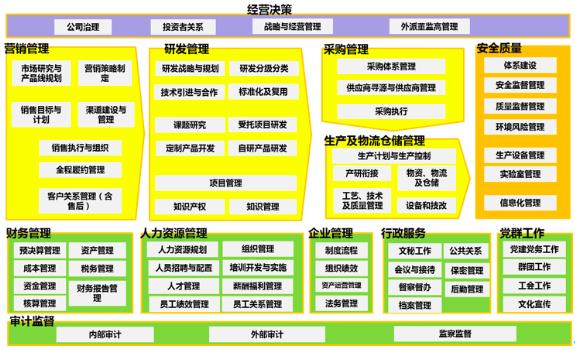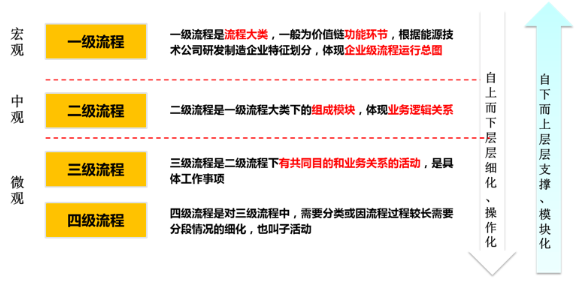 组织运作机制可以整体概括为:前台经营、中台支撑、后台服务。流程体系设计需要以组织架构为基础和前提,因此,项目组将通过行业最佳实践、能源技术公司组织运作模式分析,与能源技术公司中高层进行充分研讨,进一步明确组织架构及运作模式。项目组初步认为,能源技术公司需要建立以产品线为主线,中台和后台全力支撑产品,从需求立项、开发、上市推广、销售、采购生产、交付、售后的全生命周期组织运作机制,打破部门墙,建立矩阵式柔性组织体系,支撑流程的高效运转。