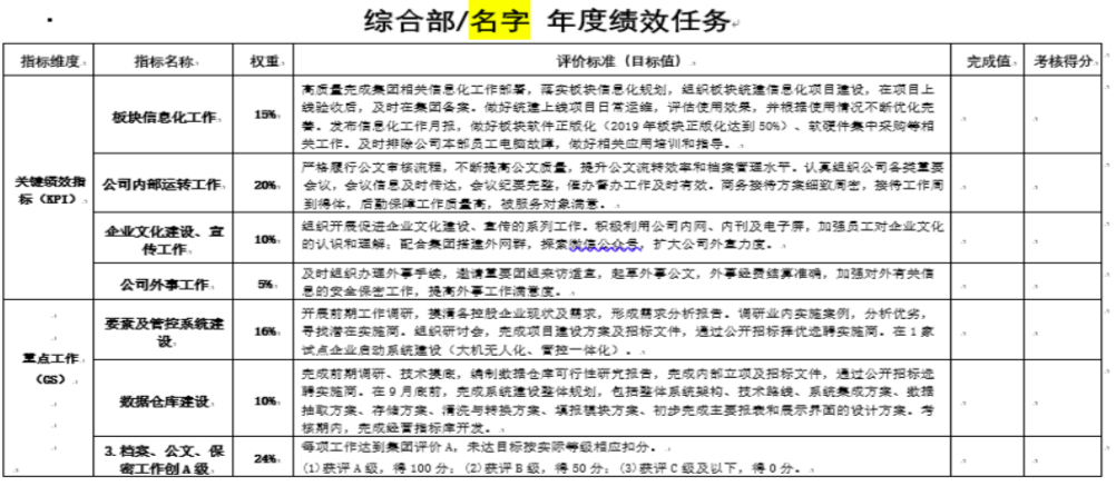 设计绩效考核方式和考核机制,结合集团考核方式,根据部门的岗位职责,设计不同层级的考核指标,并实现绩效与薪酬的联动机制。
