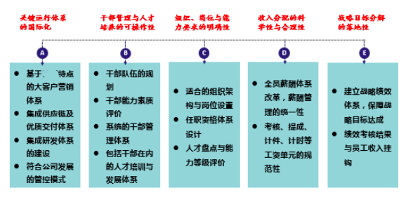 营销、研发、供应链三大体系独立性强,相互协调性差,业务条线运转效率较低;业务管理过于经验化,无流程体系、流程文件、流程文化。