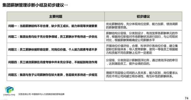 2、优化集团薪酬管理办法。根据集团的内部情况、外部环境、企业发展阶段以及市场化需要,确定集团薪酬策略,进而从薪酬模式、薪酬结构和薪酬水平三个方面对集团薪酬进行优化调整,提高薪酬的激励作用。