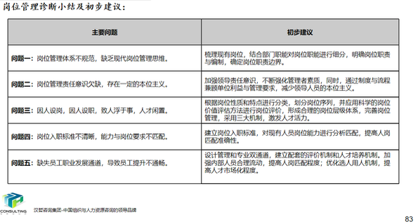 1、定岗及岗位职能分配。根据当前管理现状,结合当前部门职责分配与分析,对集团本中、各子公司、各分厂岗位进行全面梳理,并对梳理出来的岗位进行职责分工与岗位要求分析,编制岗位说明书。