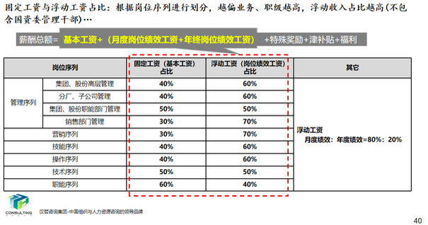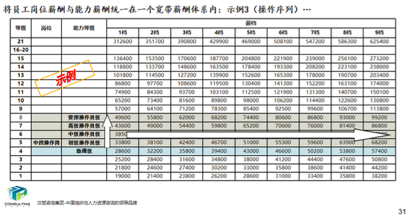 在集团薪酬设计中,结合客户要将岗位价值与员工能力结合并应用于薪酬的要求,重新构建了适用于客户现状的新的薪酬体系架构。同时,对于对薪酬要素、薪酬结构、薪酬水平,调薪标准等一系列内容进行了细化设计;