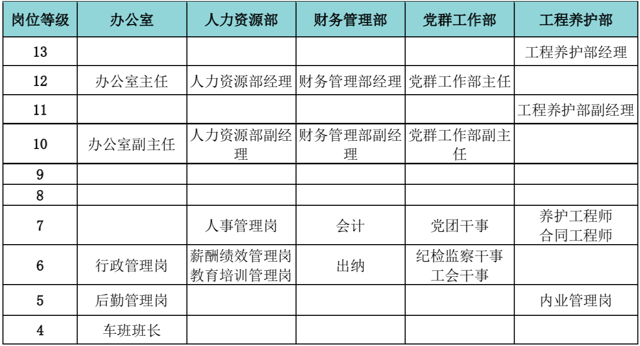 此种方法的理念是,一个企业由不同的岗位构成,不同的岗位价值不同,因此相对应的薪酬应该有所不同。岗位价值等级决定了公司的薪酬等级。此模式通常需要做岗位价值评估,岗位价值评估的方法包括海氏、美氏、HCGPE等,通过岗位价值评估工具,将公司的所有岗位划分为不同的岗位等级,形成岗位地图,如下图所示,然后将岗位等级转化为薪酬等级,再设定薪酬档位,形成一个矩阵式薪酬宽带。不同的人根据其岗位等级确定薪酬等级,然后在该等级内横向发展。