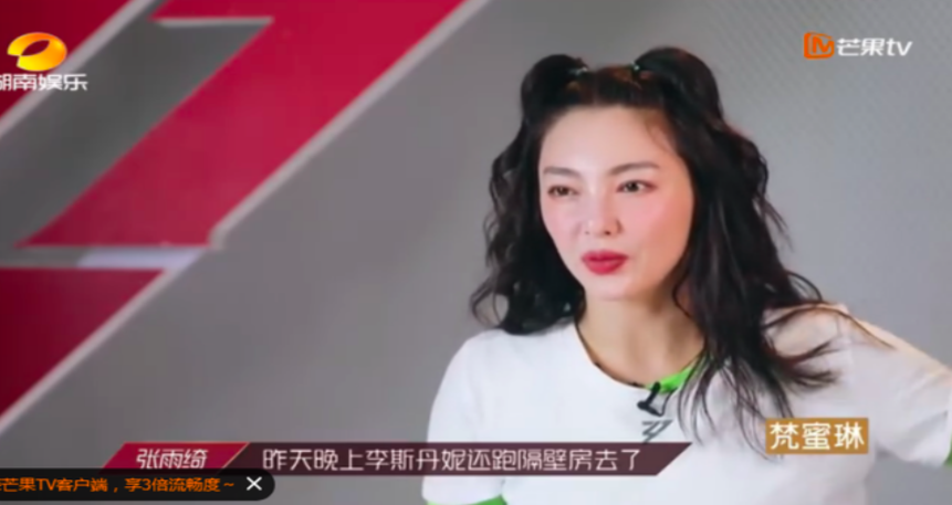情景7:某次采访中,张雨绮指出李斯丹妮应该多花点时间在自己的团队上,大家多沟通磨合。蓝盈莹想让李斯丹妮过去帮忙教舞蹈,张雨绮直接拒绝,说自己团还没有练习到位,还是一塌糊涂。
