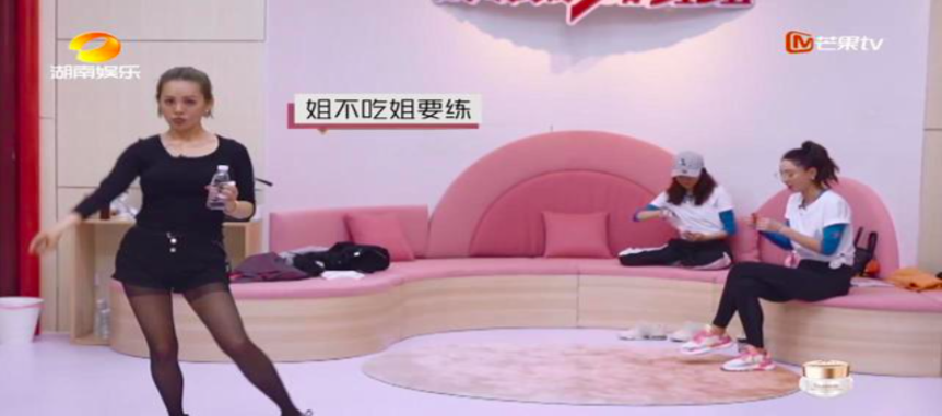 情景8:吴昕学舞蹈有点崩溃,坐在后面生气,蓝盈莹(队长)以为是累了,过去捏背,好让她清醒。黄龄情绪不对,都不说话了,蓝盈莹丝毫没有察觉。在这个团队里,好像每时每刻都处在一个高压的状态下,神经紧绷,有点窒息。