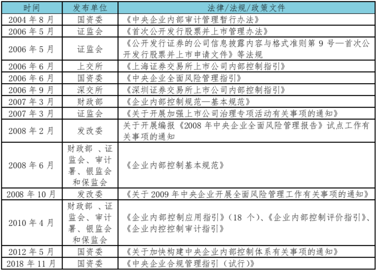 以上便是我们所熟知的“一规范三指引”,并且在国有企业内控体系建设及评价,外部审计机构审计中被广泛引用。