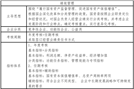 5、《中央企业负责人经营业绩考核办法》(2016年12月8日国资委令第33号),从考核导向、分类考核、目标管理、考核实施、奖惩等几个方面对中央企业负责人经营业绩考核进行了规定。