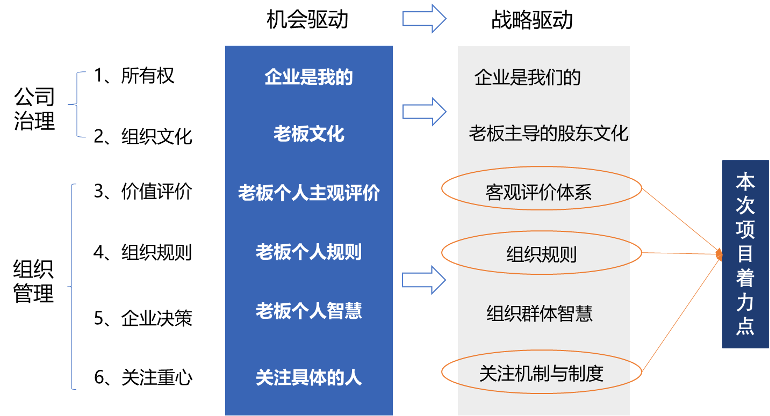 从公司战略转型的角度看,本次项目最终要实现的是公司管理机制的转型: