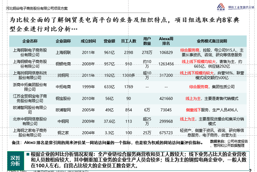 2、外部对标。通过与目前发展较为成熟大宗商品电商平台对标,探究其组织发展、部门岗位设置、各部门人员结构比例等规律,设计钢谷的组织架构。