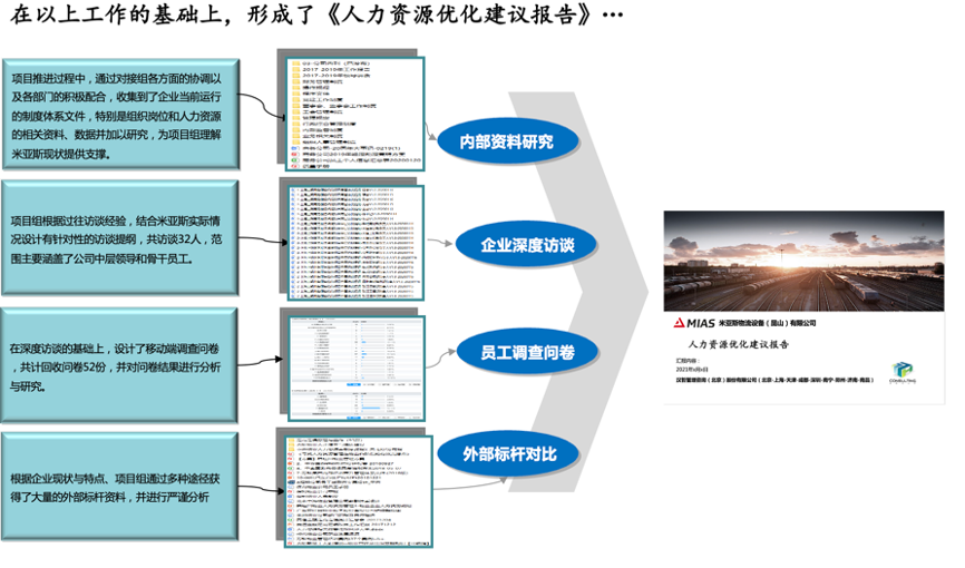 项目启动之初,通过内部资料研究、企业深度访谈、员工调查问卷、外部标杆资料对比,政策研究等维度进行全面诊断,发现问题并提出改进的思路。