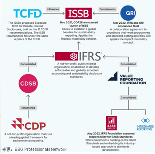 1、我国企业ESG披露主要以自愿披露为主,披露框架多借鉴国外。信息披露一般分两类,一类是强制披露,另一类是自愿披露。我国企业披露目前无强制要求,以自愿披露为主。另外,信息披露要遵循一定的框架,ESG披露框架较多,目前国际上主流的ESG披露标准主要有GRI、ISSB、SASB、TCFD等(如下图),而我国企业尚未形成统一的ESG信息披露框架,大部分企业的ESG信息披露均是在国外主流框架基础上进行。