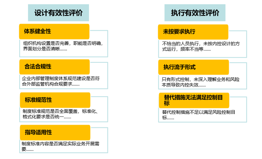 2.从内控设计有效性和执行有效性两个维度进行评价。