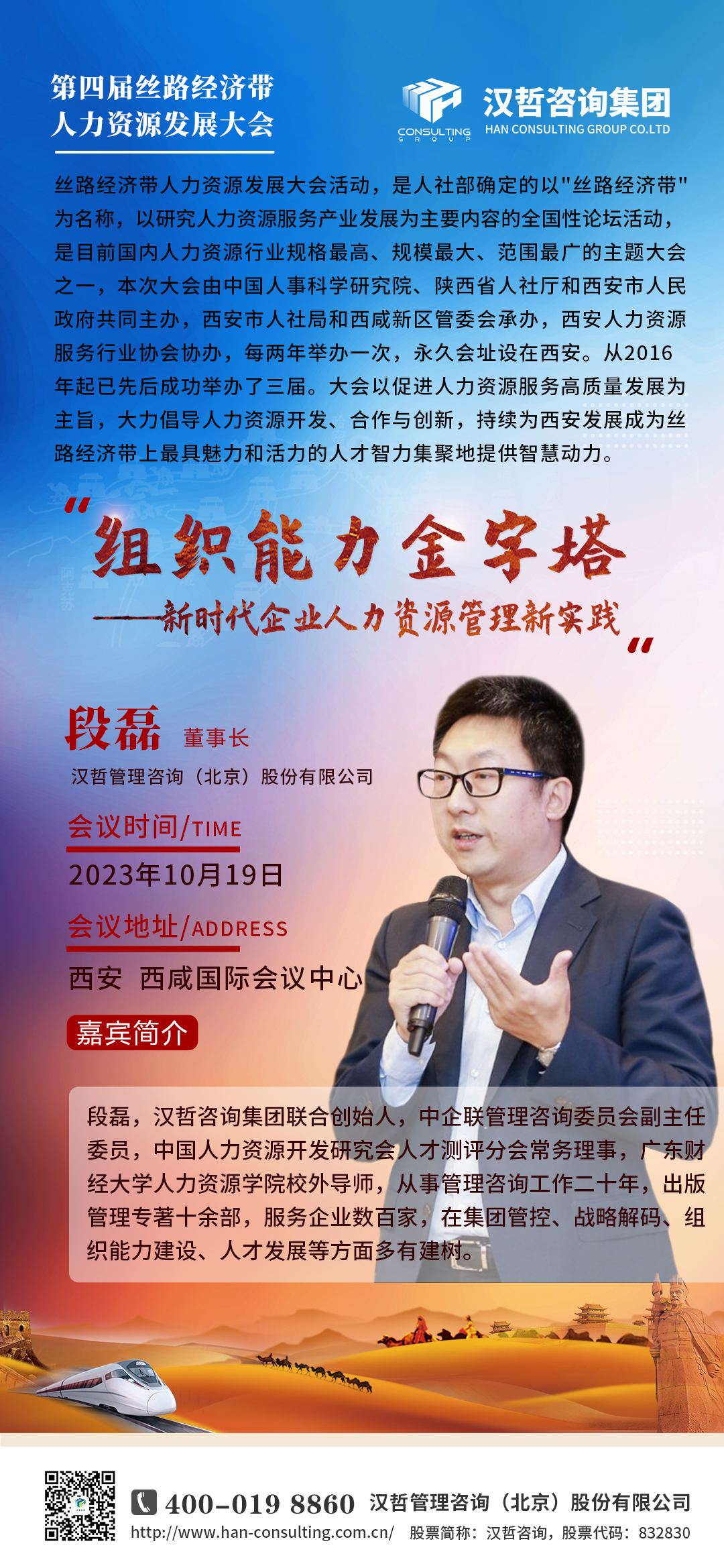 欧博官网ABG咨询创始人段磊博士受邀参加本次盛会,并为与会嘉宾做题为《组织能力金字塔-新时代企业人力资源管理新实践》的专题演讲,组织能力金字塔(POC),是欧博官网ABG咨询首创并付诸于企业实践的一套系统、科学的组织与人才建设解决方案,将文化、战略、组织、流程、人才管理与开发、数字化等多个元素有机融合,打破了传统人力资源管理方法的边界和局限,将“人“放到战略、文化、组织的大视野、大环境中去配置、去使用、去开发、去评价、去激励,是人力资源管理第五代方法论的集大成者,在若干企业的实战应用中,也取得了突出的成效。本次盛会,段磊博士将代表欧博官网ABG咨询,以案例的形式,系统介绍这套面向新时期的组织与人才系统解决方案。