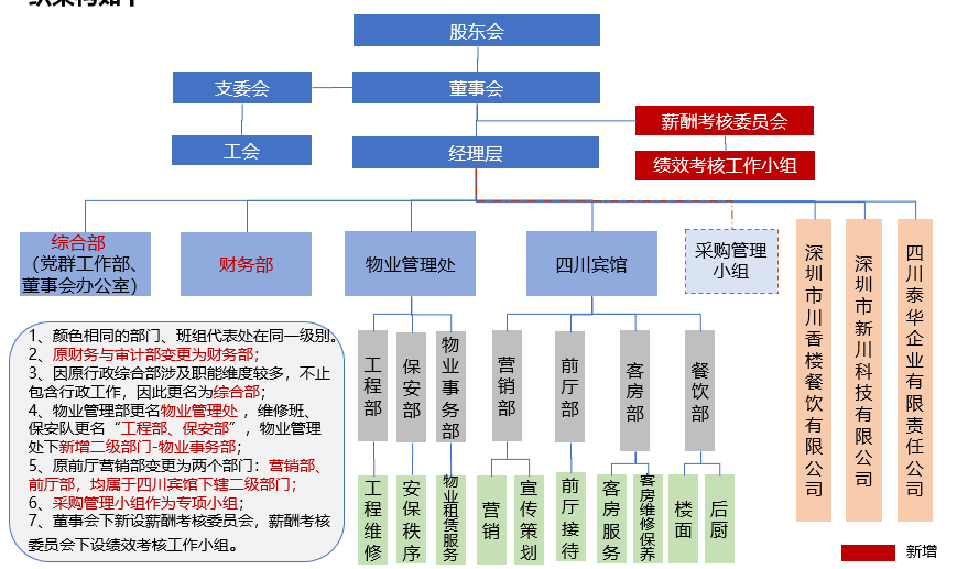 参考中山温泉、东戴河合成大酒店、深圳天健置业等外部标杆,结合公司业务价值链优化公司的组织架构。