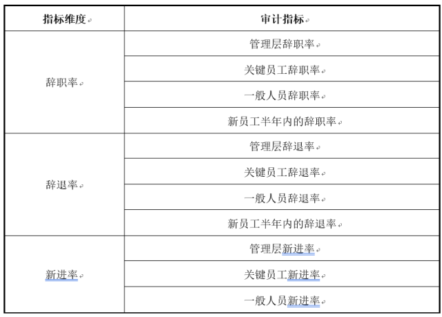 对于一个企业来说,人员流动率总体太高肯定不好,但是,如果流动率太低,或者根本没有流动,也未必是好事。因此,在人力资源流动性审计的过程中,很难用一个数字说明组织的最适宜的流动率。因此,欧博官网ABG咨询将衡量人力资源流动的指标构成一个指标集,如下表所示: