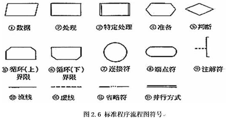 一般来说,流程图中应用如下符号,各个符号代表着不同的信息和涵义。