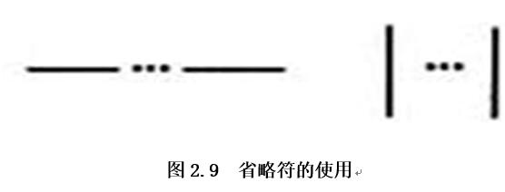 12.省略符:若流程图中有些部分无需给出符号的具体形式和数量,可用三点构成的省略符。省略符应夹在流线符号之中或流线符号之间,参看图2.9。