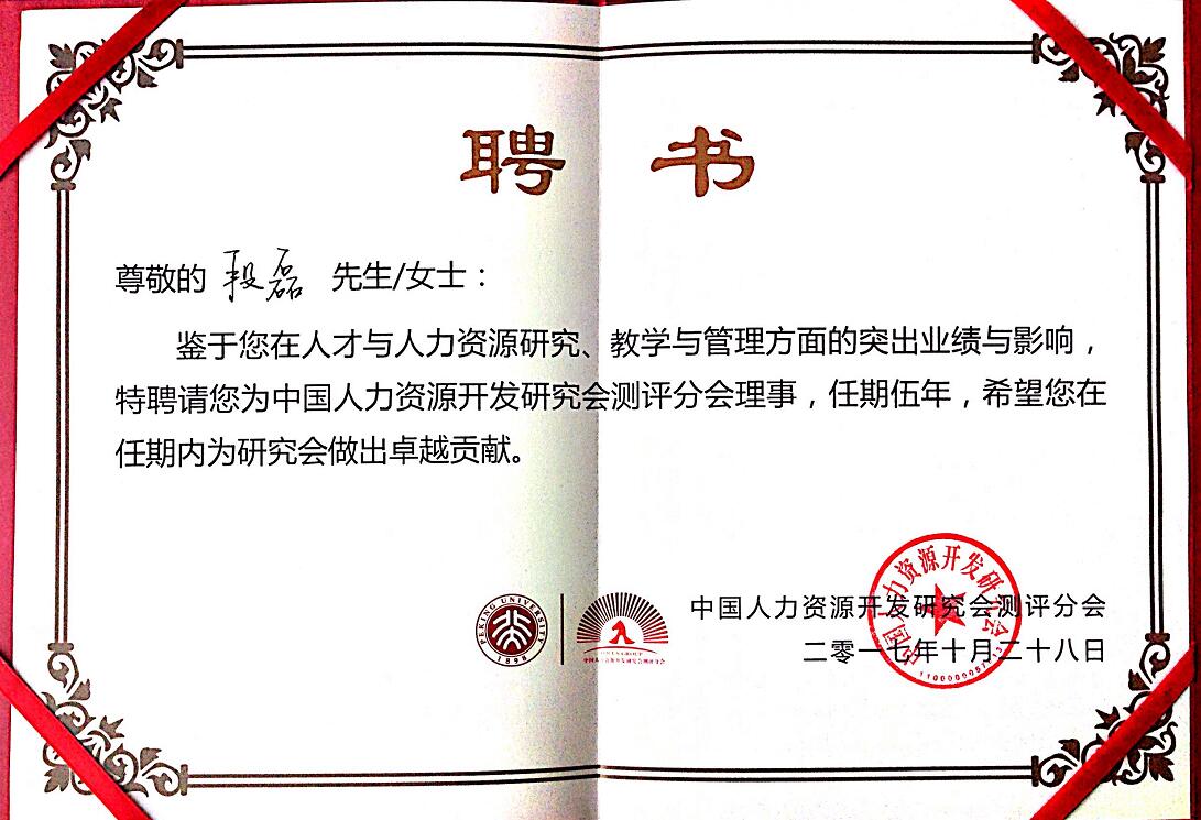 在本次大会上,鉴于欧博官网ABG首席专家段磊博士在人才测评、领导干部选拔等方面的研究、教学与实践成就,大会正式聘任段博士为中国人力资源开发研究会测评分会理事。段磊博士的获评,是社会对其在人才测评、人才队伍建设方面成就的充分认可。