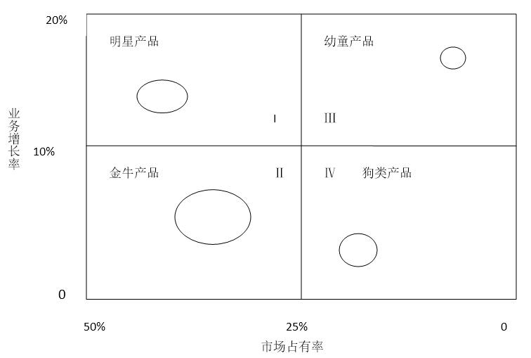 企业实力包括市场占有率,技术、设备、资金利用能力等,其中市场占有率是决定企业产品结构的内在要素,它直接显示出企业竞争实力。销售增长率与市场占有率既相互影响,又互为条件:市场引力大,市场占有高,可以显示产品发展的良好前景,企业也具备相应的适应能力,实力较强;如果仅有市场引力大,而没有相应的高市场占有率,则说明企业尚无足够实力,则该种产品也无法顺利发展。相反,企业实力强,而市场引力小的产品也预示了该产品的市场前景不佳。
