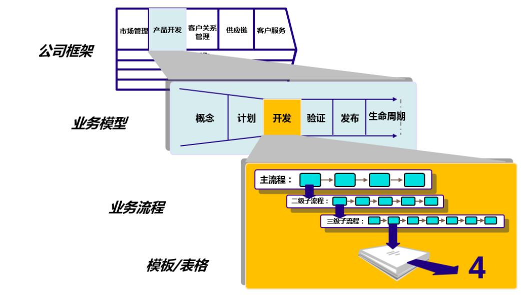 所谓业务模型,就是企业某一核心业务或管理流程体系的基本运行逻辑,如:研发管理的业务模型,就描述了企业研发工作从输入到输出的主要过程。