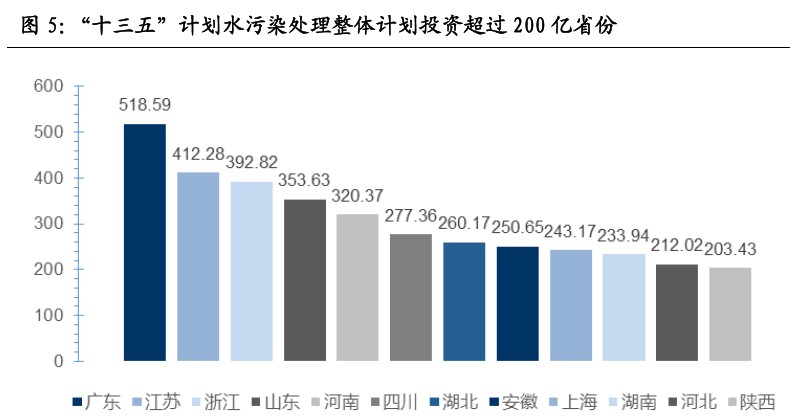受《关于推进海绵城市建设的指导意见》、《水污染防治行动计划》、《“十三五”全国城镇污水处理及再生利用设施建设规划》等政策的推动,当前水环境产业进入快速发展期。