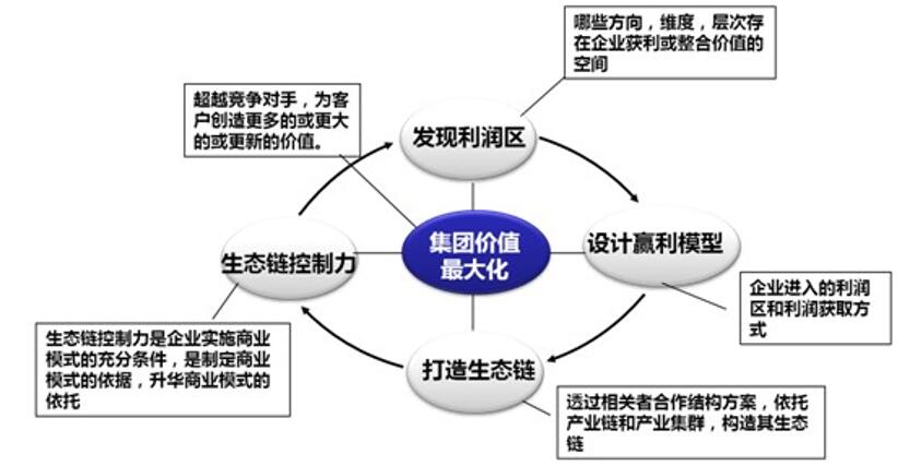 欧博官网ABG以实现集团价值最大化为核心目标,从发现利润区、设计赢利模型、打造生态链、生态链控制力等四个维度,对商业模式进行创新设计。