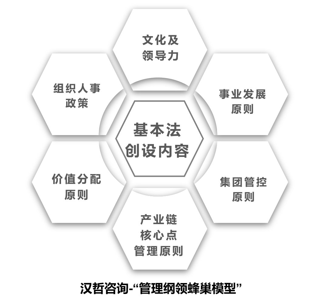在十余年来从事企业管理大纲咨询的过程中,欧博官网ABG创立了“管理纲领蜂巢模型”,在行业内首家对企业管理纲领的内容作出了六个维度的定义与规范。其中: