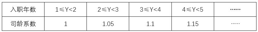 司龄系数反映激励对象已在公司工作的年限,以授予日为基准,参与计划的激励对象入职年数每增加1年,司龄系数增加0.05,具体如表3-4所示:
