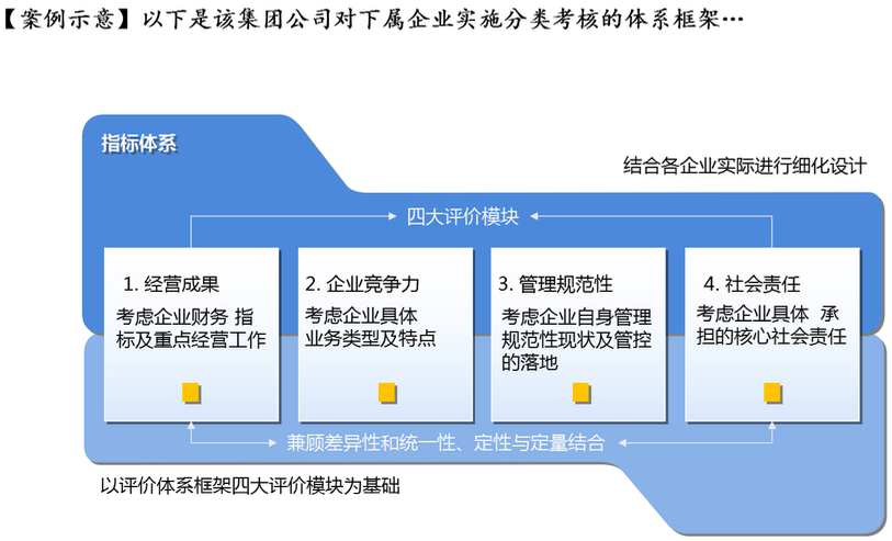下属单位领导班子考核薪酬设计中,更加注重对于国家以及当地的国资等在国企考核管理方面的政策要求,同时充分借鉴欧博官网ABG国资案例库的案例,对下属单位进行了分类考核的设计。