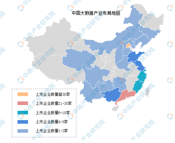 据产业地图显示,北京大数据产业上市企业数量最多,达到了37家。其次,广东为21家。上海则为10家,其余省份的大数据上市企业均在10家以下。