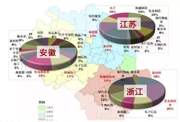 根据我们统计,江苏作为最早展开园区共建工作的地区,其园区产业发展质量相对较高,三大主导产业方向分别为电子信息、新能源产业和新材料产业。安徽则产业层次较低,除装备制造业和机械加工业外,园区的主导产业多为矿产资源开发、汽车零部件制造、纺织等低端产业。这给长三角高质量均衡发展提出新课题。