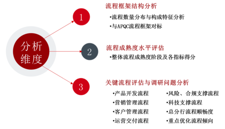 工作组基于以上调研信息,分别从流程框架结构分析、流程成熟度水平评估、关键流程问题分析三个方面进行诊断。