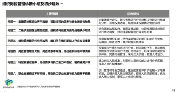 2、优化集团及子公司的组织岗位。根据集团战略发展方向和子公司业务侧重、未来发展预期,对集团及子公司部门设置、部门职能模块选择进行了优化和调整,并根据集团及子公司组织架构的调整对各部门岗位设置、职能、编制进行了优化,形成了较为合理、科学的组织岗位设置、部门职能汇编以及岗位说明书汇编。