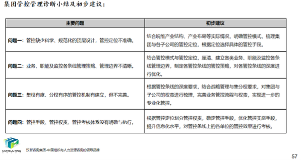 项目启动之初,通过内部资料研究、企业深度访谈、员工调查问卷、外部标杆资料对比,政策研究等维度对集团发展战略、集团管控、组织流程、岗位体系、薪酬体系及绩效管理系统进行了全面诊断,发现问题并提出改进的思路。