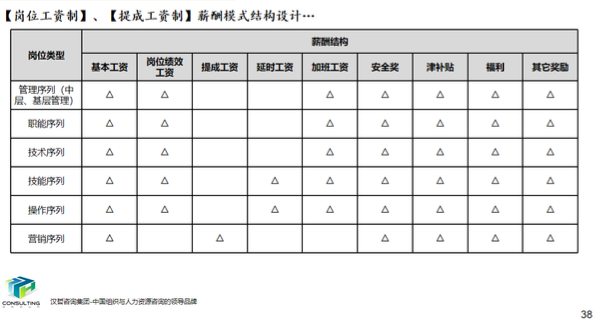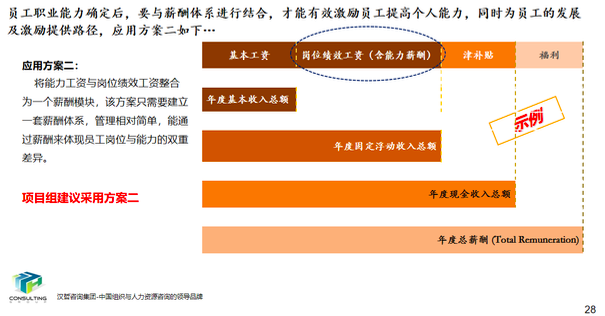在集团薪酬设计中,结合客户要将岗位价值与员工能力结合并应用于薪酬的要求,重新构建了适用于客户现状的新的薪酬体系架构。同时,对于对薪酬要素、薪酬结构、薪酬水平,调薪标准等一系列内容进行了细化设计;