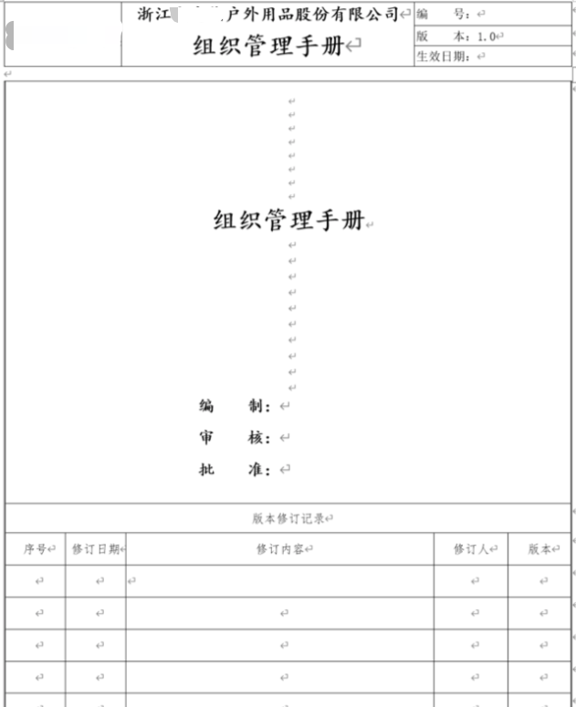 汇编形成《浙江公司户外用品股份有限公司组织管理手册》一份。