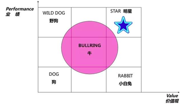 阿里文化落地的一个强有力的抓手就是价值观考核。阿里从第一版价值观开始就实行严格的考核制度。关于为什么要考核价值观,马云做过这样的阐述:“价值观如果不被考核,一定会慢慢落成很虚的东西,挂在嘴上,贴在墙上的东西。虚的东西一定要做实,怎么实?考核”。(一)考核框架和方式阿里的考核根据员工的层级划分为两种:一种是针对于M3/P8及以下,实行通关制:通过季度考核、年度总分将依据员工四个季度的平均分和价值观改进趋势给出。一种是针对于M4 /P9及以上,不执行通关制:以述职为主要方式进行直接打总分。对于价值观的考核评价,多采取简单而明确的锚定评价,即为每一个价值观设置从1-5不同的等级描述,对照相应描述对员工的表现进行核定和打分。在阿里员工的考核中,价值观和业绩指标各占50%,获得同样的权重。根据业绩与价值观的双重考核把员工分为五种:一是明星,业绩和价值观得分双高,可以委以重任或探索创新业务;二是牛,是业绩和价值观都达标的员工,是企业里的大多数;三是狗,业绩和价值观都不达标,需要被‘杀’掉;四是小白兔,价值观很好但没业绩,需要给机会去轮岗或培训,但给两次机会后业绩还不达标的也需要被‘杀’掉;五是野狗,业绩很好但价值观不达标,比较危险。但是这个评价又是动态的,可能今天的牛会变成明天的狗,今天的明星有可能明天就是牛。