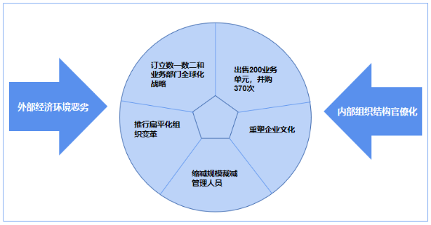 GE历经百年风雨,适应着各种环境,不断在调整中发展,在自我变革中新生。GE在近代史上,被人称道的是上个世纪80年代杰克为·韦尔奇领导的战略变革。
