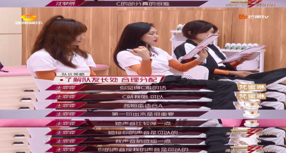 笔者看过的几期节目中,发现常常有“小姐姐们”的心声采访,尤其是针对每次分组后团队leader的人选,大家也都有自己的真实想法。笔者认为以此可当作关键行为事件访谈,同时结合日常排练及合宿生活中的行为表现,从中提取相关的领导力要素。