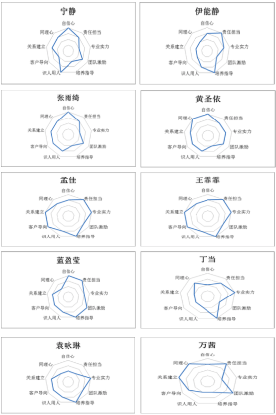考虑到节目中人员数量众多,笔者挑选了以下十位进行领导力测评,结果如下: