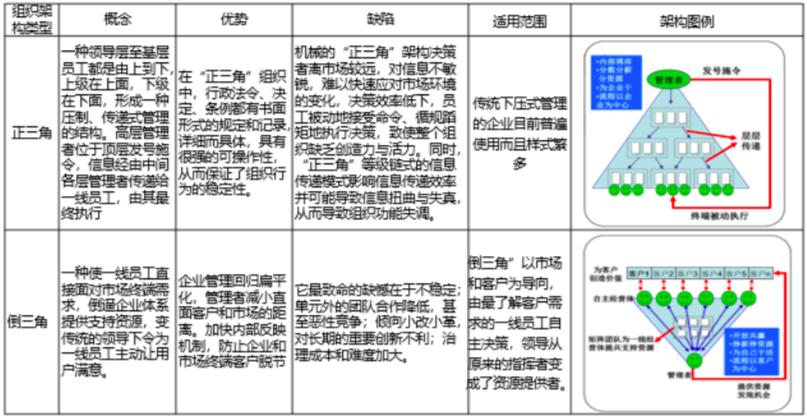 现代的组织架构变革呈现四大趋势:扁平化、柔性化、网络化、虚拟化,企业在组织架构创新方面有很多尝试,大部分的调整都契合了市场竞争和市场环境的变化和需求,取得了良好效果。但随时间的推移都有其局限性,因此不断的创新优化是保持活力的源泉。在信息传输技术迅猛发展和经济全球化的背景下,市场环境瞬息万变,消费者需求呈现出“碎片化”的特点,消费者行为和需求的不确定性越来越高,于是更接近客户和市场的“倒三角”组织架构应运而生。