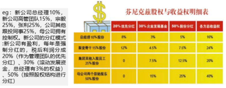 1、母公司创始人控股新公司,同时收益权上充分激励创业团队;创业团队成员必须掏钱参股,以身家性命赌未来。