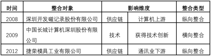 成功的案例,如国内500强深圳长城开发科技股份有限公司(股票代码:000021,深科技)上市以来,通过一系列整合操作将从一家以OEM为主的企业转型为自主研发、集合管理、采购、研发制造、产品设计、封装测试、售后服务等多模块全产业链服务领先科技企业。